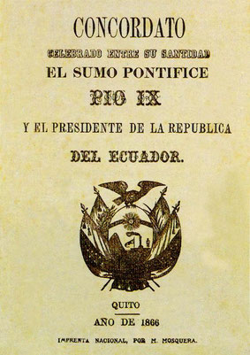 Años antes, en 1862 y también por iniciativa de don Gabriel García Moreno, el Ecuador celebra con la Santa Sede el Concordato en el cual daba plena libertad a la Iglesia Católica para su labor pastoral, así como plenos poderes para velar por la esfera espiritual del pueblo ecuatoriano.